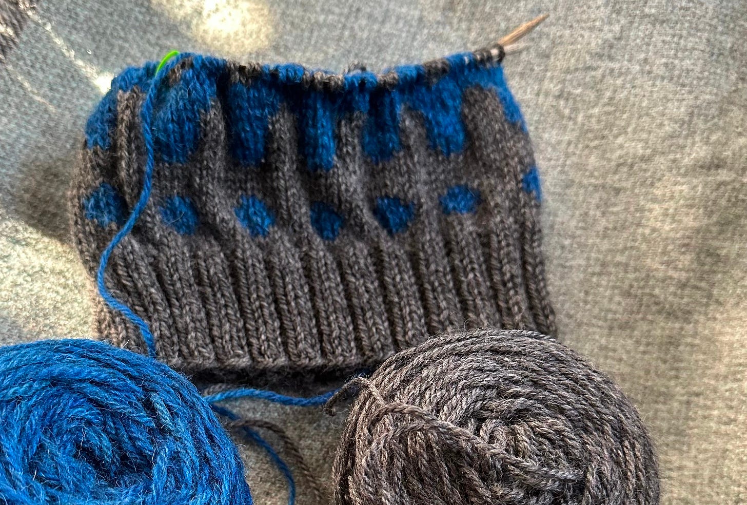 With book promotion efforts slowing down, I have a bit more time for my other hobbies. I’m a very infrequent knitter, but I decided to tackle a simple colorwork pattern for the first time this year, and I think it’s going well.